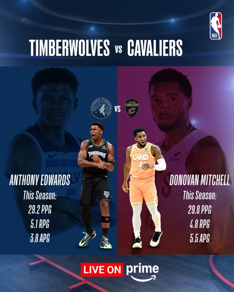 而赛季至今,爱德华兹场均29.2分5.1篮板3.8助攻,米切尔则为29.8分4.8篮板5.5助攻。